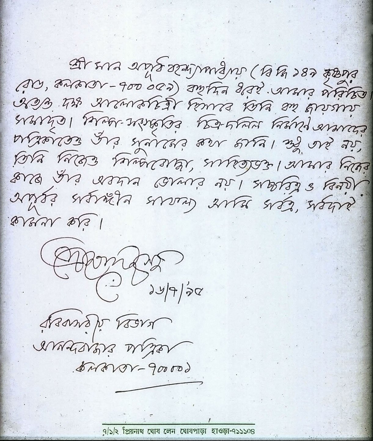 Over a period of time from the mid 80's to present day, photographer Apurba Banerjee has created a rare collection of portraits of world famous renowned personalities and has specialized the niche concept of "available light photography" in Bengali theatre arenasduring the golden period of Bengal's cultural field. His photographs have been published in many of the world’s leading magazines & newspapers e.g. (..................).
