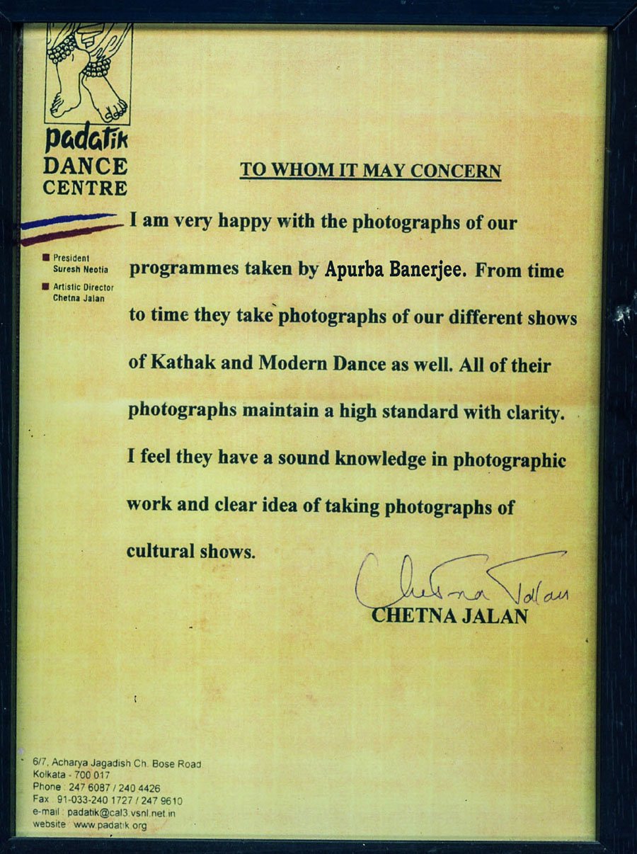 2) Certificate of Dr. Manjushree Chaki Sorkar, Dr.Kumar Roy, Promod Basu, Ratna Ganguly, Sumitra Sen, Purnendu Potri, Pandit Birju Moharaj & Padatick.