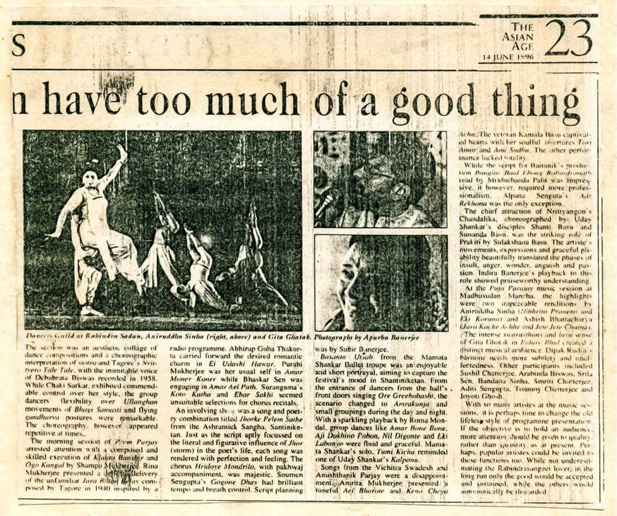 In 1998, the Bengali premier theatre group,Bohurupee, organized a photographic exhibition, with photographstaken by Apurba Banerjee& Nemai Ghose with some others. His work has been exhibited and published both in India & around the world. He brought a boldindividualistic sensibility, with the help of which he soon became one of the most famous photographic talent of our country. He has the largest personal collection of pictures of dancers, musicians, performers and renowned cultural personalities to his credit.